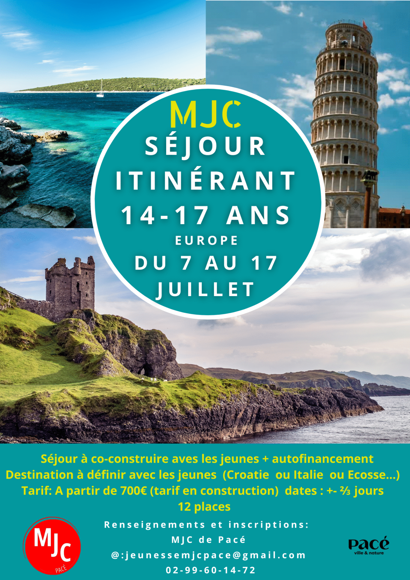 La MJC organise un séjour itinérant à l’étranger pour les 14-17 ans du 7 au 17 juillet. Les dates peuvent bouger à +/- 2-3 jours